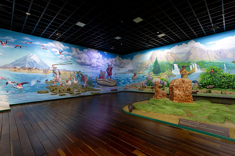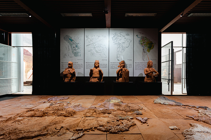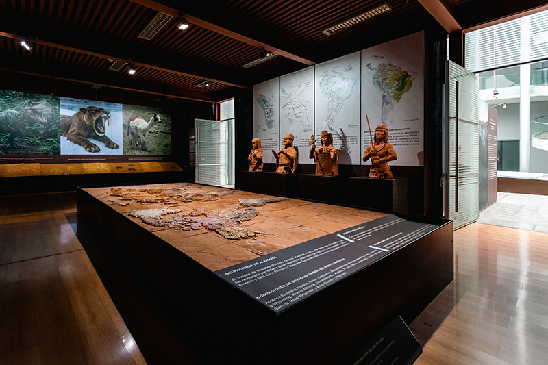 Esta exposición nos muestra la historia de nuestros territorios, y se divide en tres salas, adentrando al visitante a un mundo de configuraciones y transformaciones que nos traen a la actualidad con más incertidumbres que certezas. La primera sala tiene tres momentos; el primero la formación de la tierra que dejó como testigos a los cerros, ríos y la naturaleza en general, atravesando momentos de crisis y estabilizaciones; el segundo momento nos muestra uno de los mayores problemas del ser humano: la toma de tierras por la fuerza, y se puede apreciar un mapa del mundo que identifica las diferentes invasiones y conquistas que ejercieron algunos estados sobre otros; y el tercer momento visibiliza los rostros de nuestros antepasados, aquellas poblaciones indígenas que desaparecieron y algunas que aún siguen sobreviviendo en momentos hostiles.