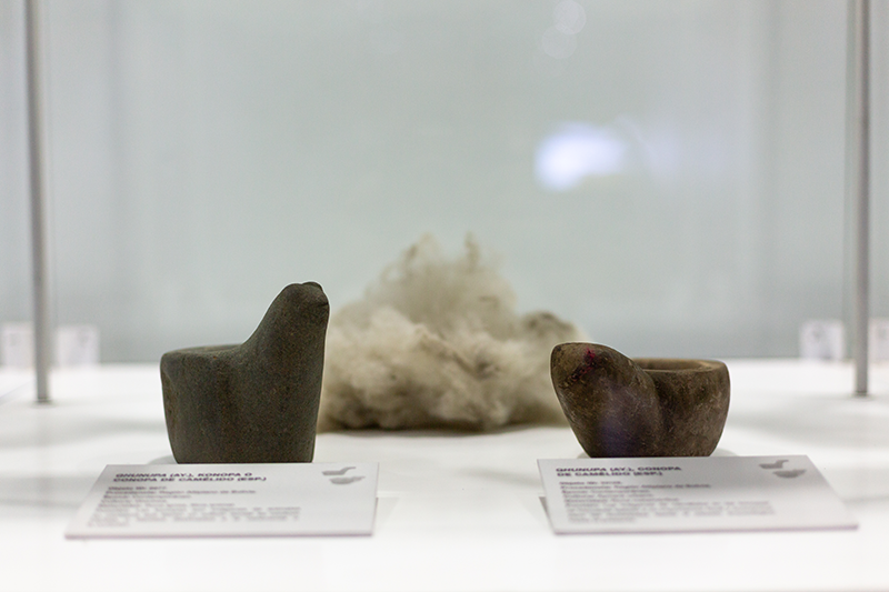 La segunda sala invita a pensar los procesos más sobresalientes de la transformación de alimentos, iniciando con una mención honorable a los camélidos que participan en la complementariedad de los territorios a través del transporte de productos. La crianza de las diversidades de semillas no sería posible sin las dinámicas sociales y tecnológicas promovidas por el intercambio ritual y económico.